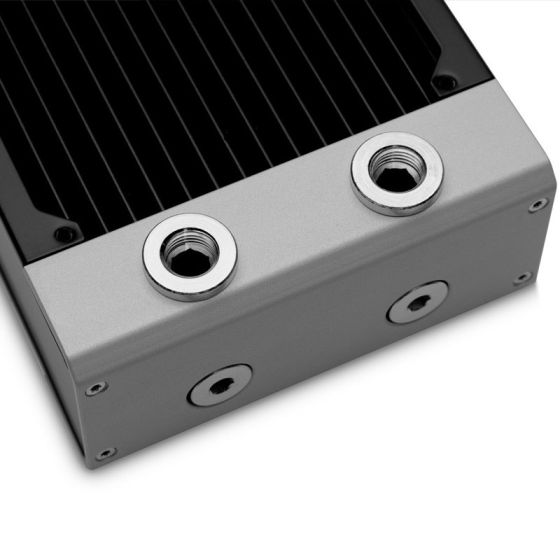 La conception de la structure interne des radiateurs a été pensée pour une faible restriction de débit, ne fournissant aucune contrainte inutile sur le reste de la boucle de refroidissement. Cela signifie que vous pourrez ajouter plusieurs radiateurs à votre boucle de refroidissement en utilisant une seule pompe (D5 ou DDC).
