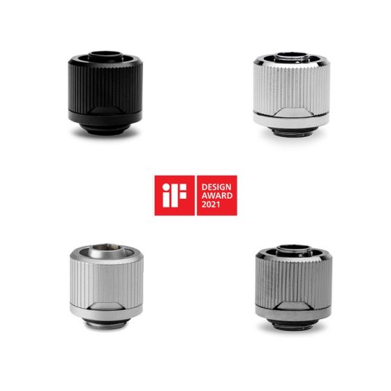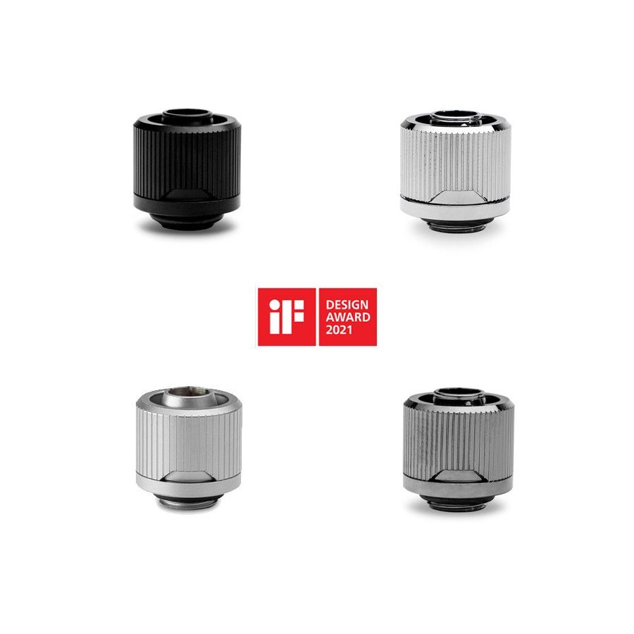 Les produits de la série EK-Quantum Torque ont reçu le prestigieux iF Design Award. Une esthétique robuste et industrielle distingue la famille Torque en mettant en évidence les processus de fabrication précis utilisés pour les créer. La famille de raccords Torque offre un système sécurisé et modulaire de connexions entre les composants de refroidissement liquide et les tubes au sein d'un PC. Les produits de la série Quantum Torque couvrent les adaptateurs coudés, les rallonges rotatives et statiques, les séparateurs, les bouchons G1/4", les vannes de vidange, les raccords et bien plus encore.