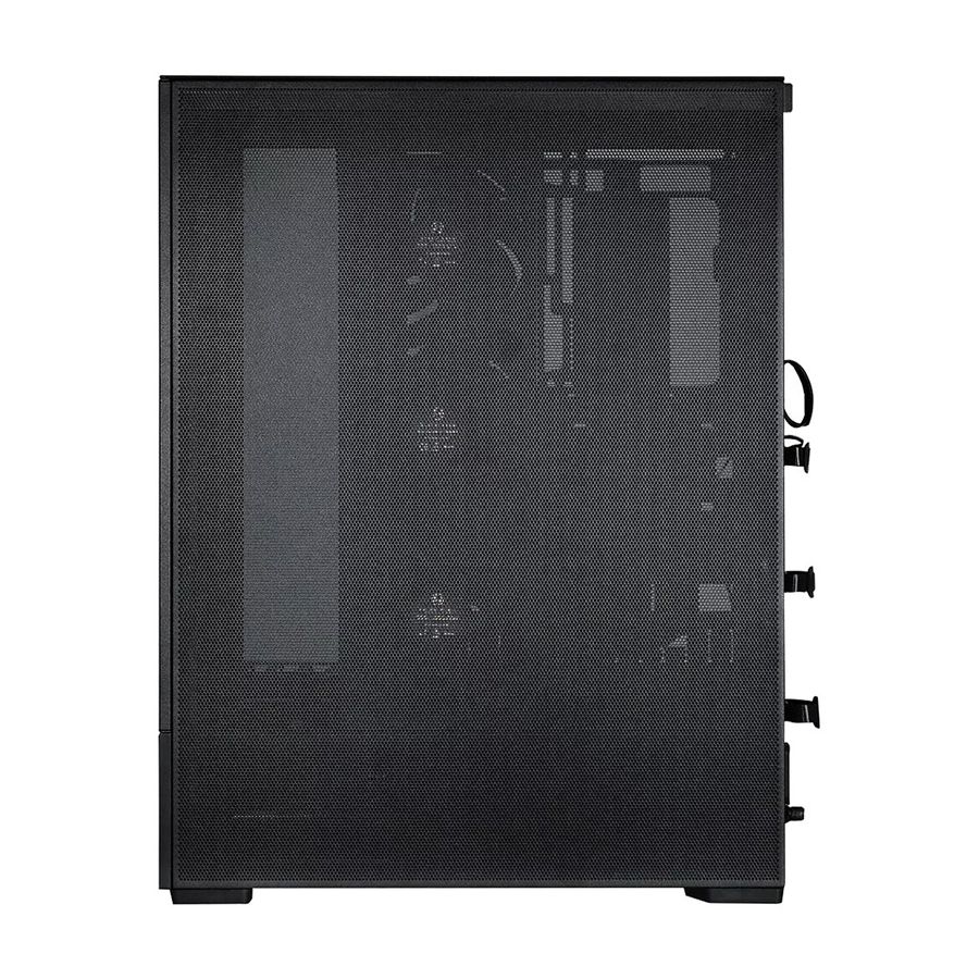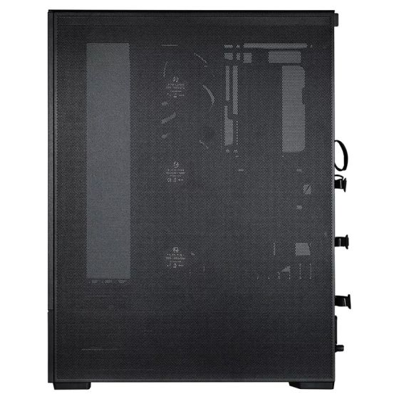 Le Lian Li SUP-01 bouscule les codes avec son format vertical qui occupe un minimum d'espace au sol tout en offrant des performances thermiques de premier ordre. La carte graphique est installée directement derrière le panneau frontal en mesh, lui permettant de puiser de l'air frais extérieur sans aucune restriction.