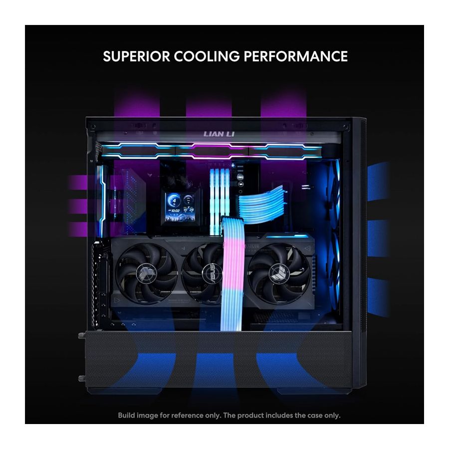 Le Lian Li LANCOOL 207 redéfinit les codes du refroidissement. Grâce à ses ventilateurs Arctic P12 ARGB et l'AIO Deepcool LS720 SE de 360mm, le flux d'air est maximisé pour garantir une stabilité totale des composants. L'optimisation GPU Cooled Case assure un silence de fonctionnement idéal.