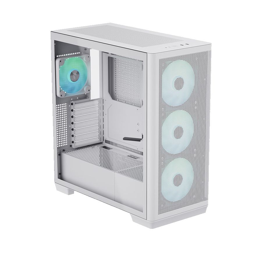Livré avec 4 ventilateurs FP1 de 30mm d'épaisseur (plus performants que les standards de 25mm), il combine une finition blanc mat haut de gamme et un panneau en verre trempé à dégagement rapide.
